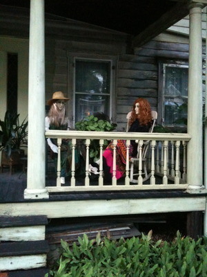 Boneka ini tidak sekadar teronggok begitu saja. Dari kejauhan, mereka terlihat seperti para wanita yang sedang duduk menikmati hari. Ketiga boneka ini memakai kostum pakaian tematis setiap harinya.